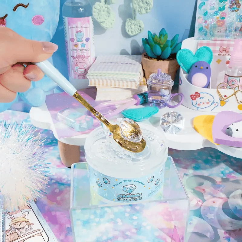 Glittering "Diamond" Toppings Mix in the sparkling, iridescent glitter and plastic diamond pieces to make your slime truly brilliant. The light catches every angle for a dazzling effect.